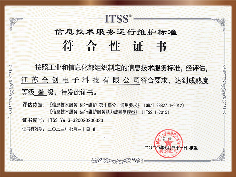 ITSS信息技術(shù)服務(wù)運(yùn)行維護(hù)標(biāo)準(zhǔn)符合性證書(shū)